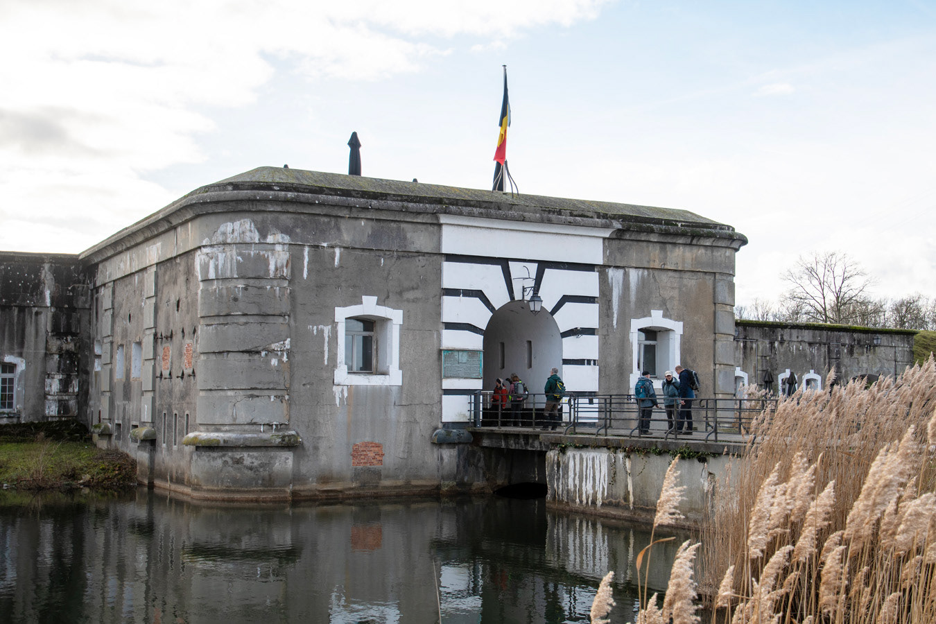 We komen aan de slotgracht van het Fort van Liezele