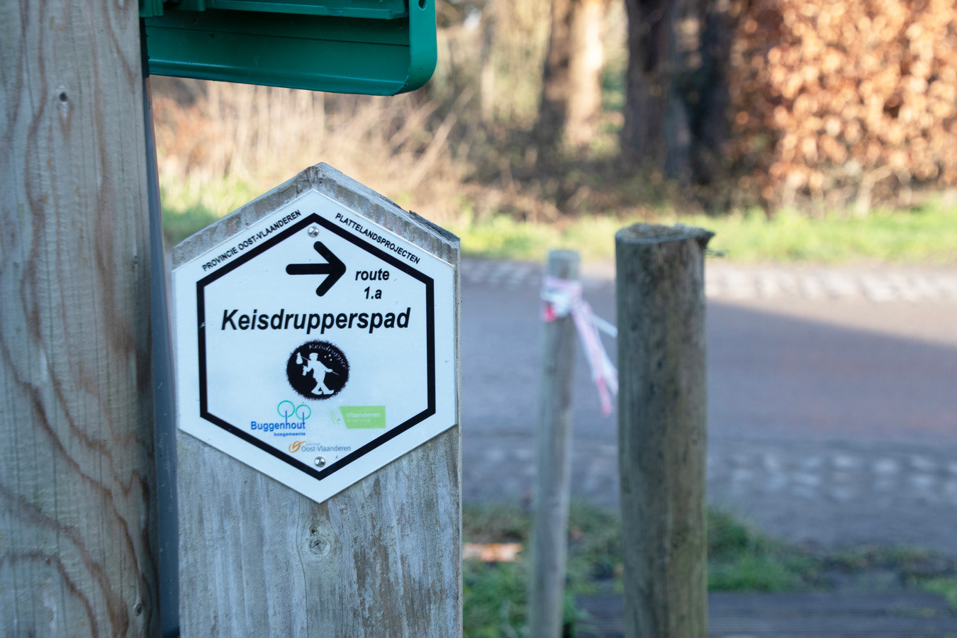 Ik sluit af met het GR-bord van de GR 126 met de verwijzingen naar het nabijgelegen Middelpunt van Vlaanderen, dat te bewonderen valt op het Dorpsplein van Opdorp.