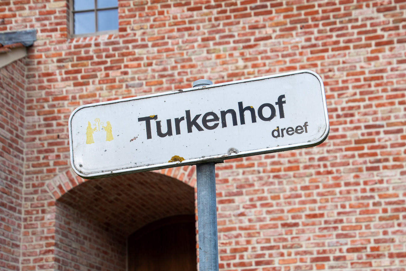 'Turkenhofdreef' : het straatnaambord maakt me nieuwsgierig ; linksboven staan 2 'vergulde' geestelijken.