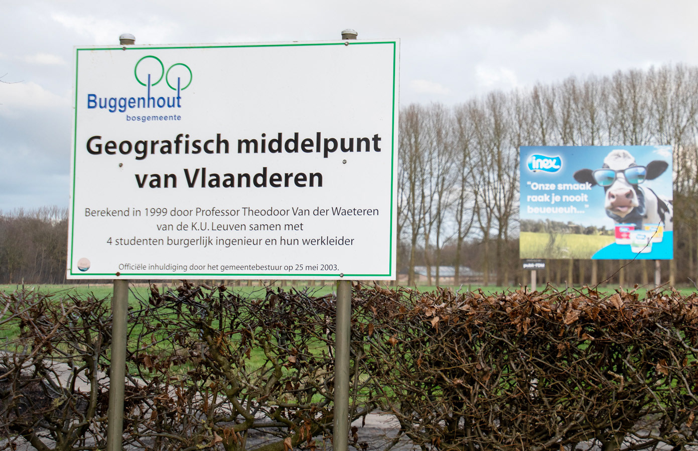 In 2003 werd op dit punt een monument geplaatst. Het middelpunt ligt ook slechts op tientallen meters van het eerder bepaalde “drie-provinciënpunt” (Oost-Vlaanderen, Antwerpen en Brabant) in de Biesten.